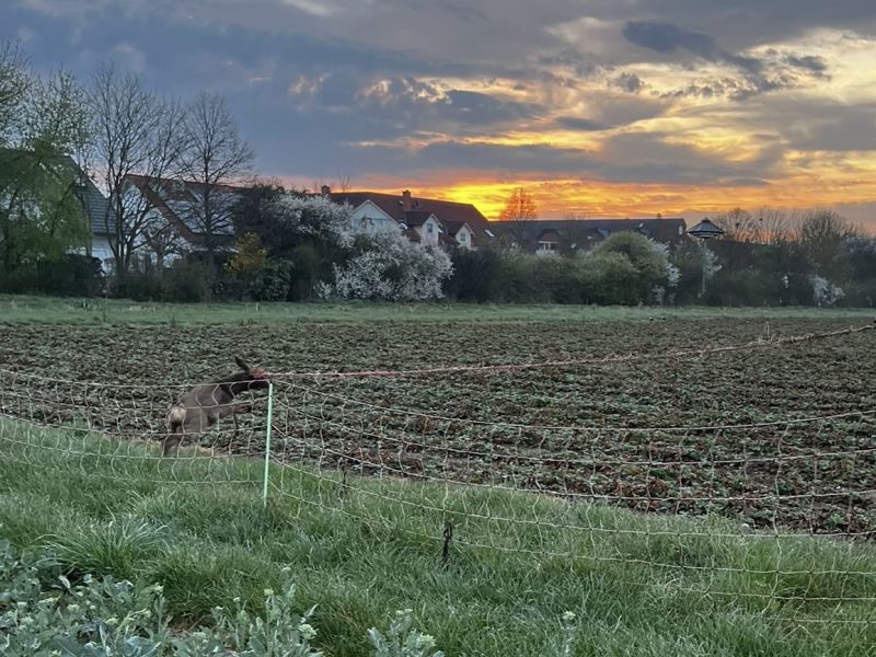 Tier in Not - Ein Rehkitz, welches sich in einem Zaun verfangen hatte, wurde aus seiner misslichen Lage befreit, Reste des Zaunseils aus dem Geweih entfernt und in seinem natürlichen Lebensraum frei gelassen.