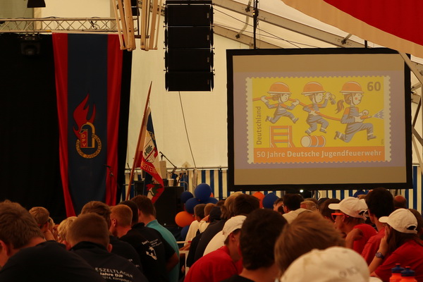 Donnerstag stand die große Jubiläumsfeierlichkeit auf dem Programm. Neben einem offiziellen Teil, tanzten wir auch zu einem einstudierten Tanz einen neuen Weltrekord mit 3193 Teilnehmern. Darüber hinaus wurde vom Bundesfinanzministerium eine Sonderbriefmarke "50 Jahre Deutsche Jugendfeuerwehr" veröffentlich und an alle Teilnehmer ausgegeben.